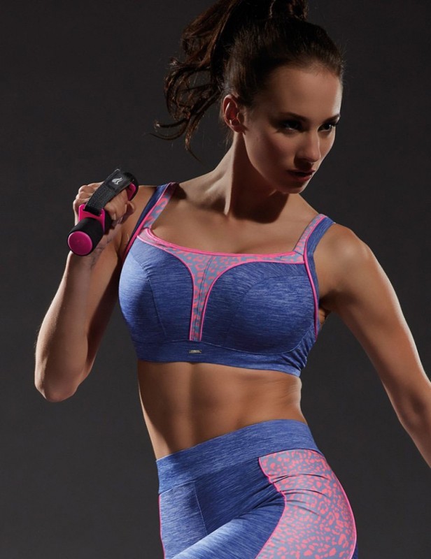 Уплотненные чашки на встроенных невидимых каркасах обеспечивают идеальную поддержку во время занятий активным спортом, сохраняя грудь от колебаний и растяжений. Особый крой снимает нагрузку с позвоночника. Плоские швы. Модель застегивается на крючки, обеспечивая идеальное прилегание к телу. Бретели сзади можно соединить в виде майки-борцовки с помощью встроенного крепления.