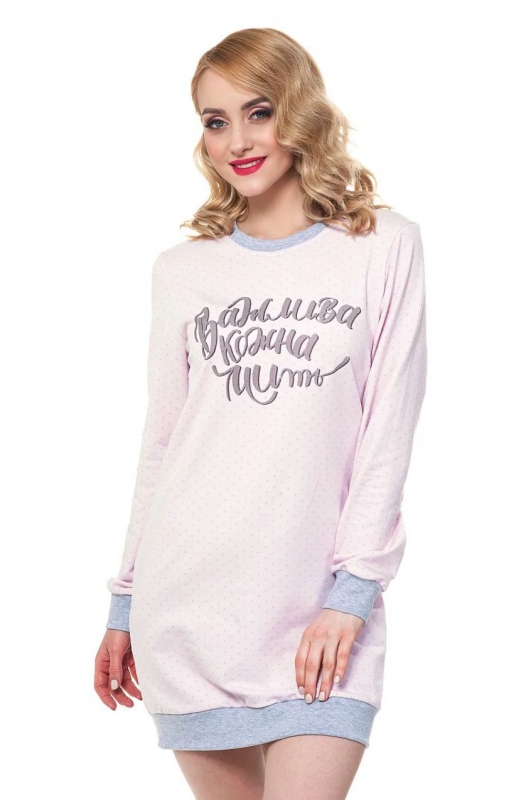 Ночная рубашка из мягкой хлопковой фланели (байки) розового цвета, манжеты серого цвета.